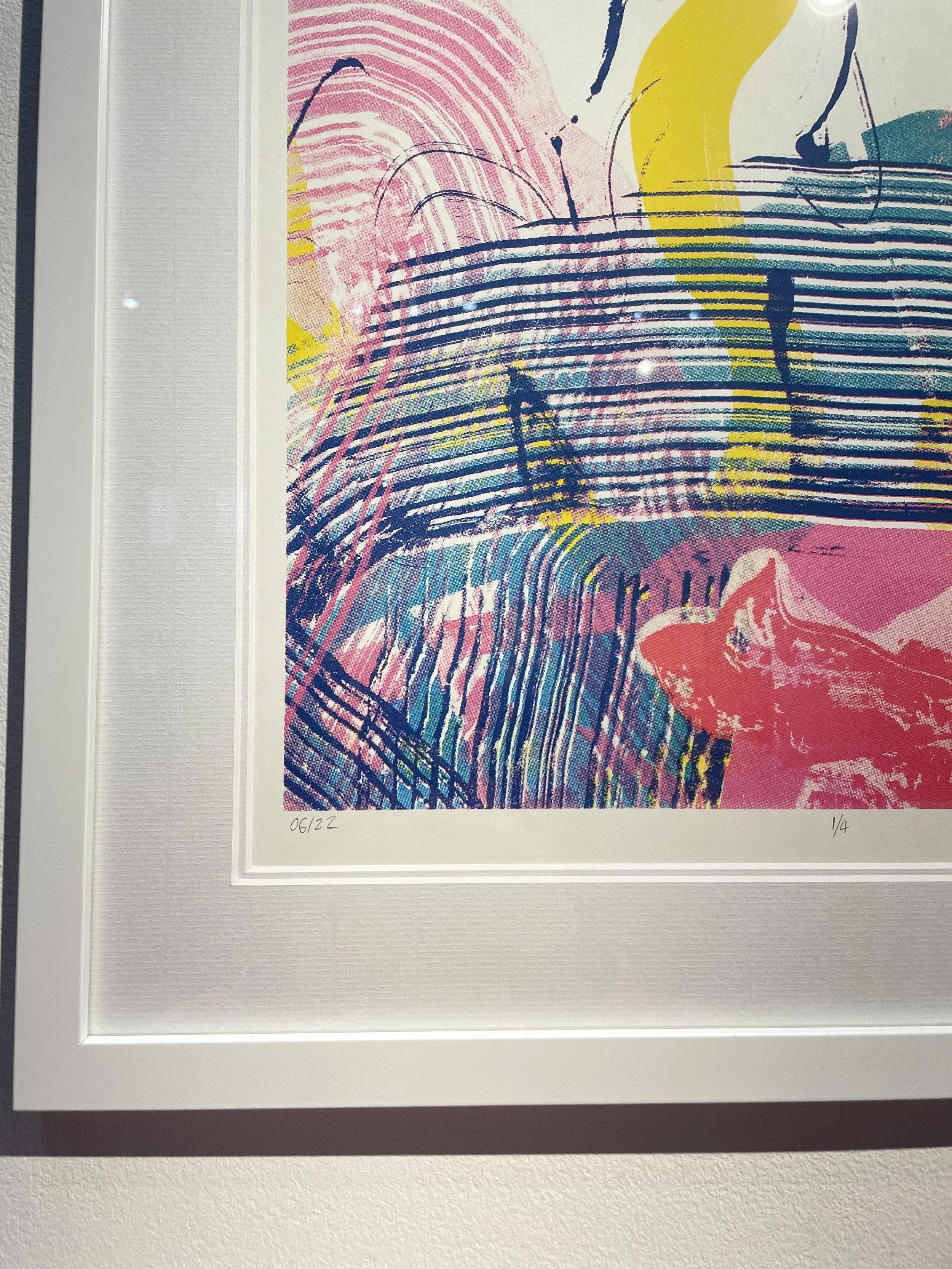 A small edition of screen prints which I have started as a response to my previous installation piece ‘Order vs Chaos’. I have taken scans of sections from the panels used in my sculptural piece and recreated them in four colour separations. Digital manipulation and mark making has always been a process and quality which I play with throughout my practice so it seemed like a natural progression to experiment digitally with this new edition. There are two framed versions currently available, both have also been exhibited at the Manchester Art Fair November 2022.